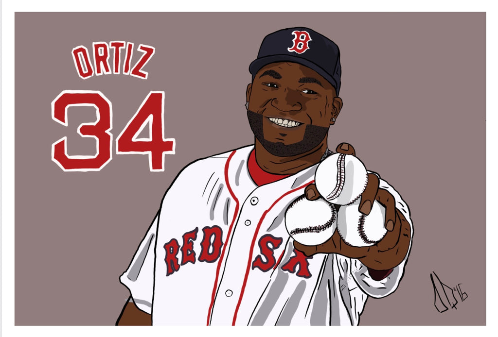 Pay homage to Boston’s baseball legend, David Ortiz, with this striking artwork that captures his powerful presence on and off the field. Perfect for Red Sox fans and baseball enthusiasts, this piece is available as a sticker, print in various sizes, or canvas to bring a slice of baseball history to your home.